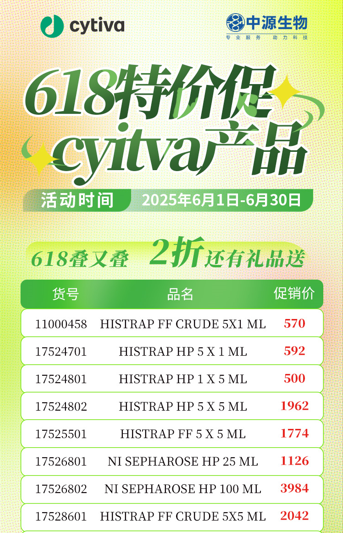 第三弹 | 618大促,Cytiva产品叠又叠,2折还有礼品送,双重叠增buff!活动时间:即日起至6.30,快来看看都有哪些~2025-06-05 17:06:00.0
