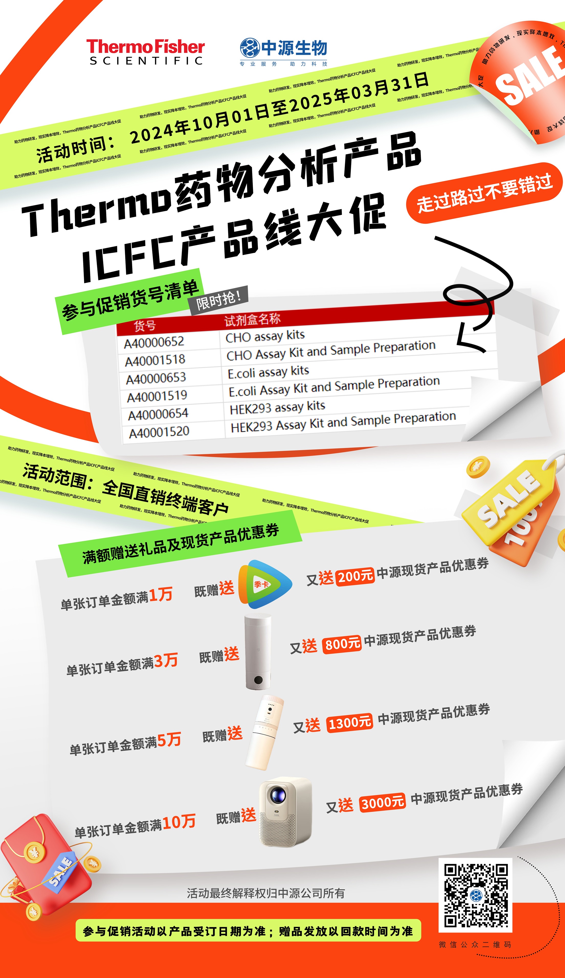 助力药物研发,现实降本增效,Thermo药物分析产品ICFC产品线大促 2024年10月01日至2025年03月31日 2024-10-23 09:36:00.0
