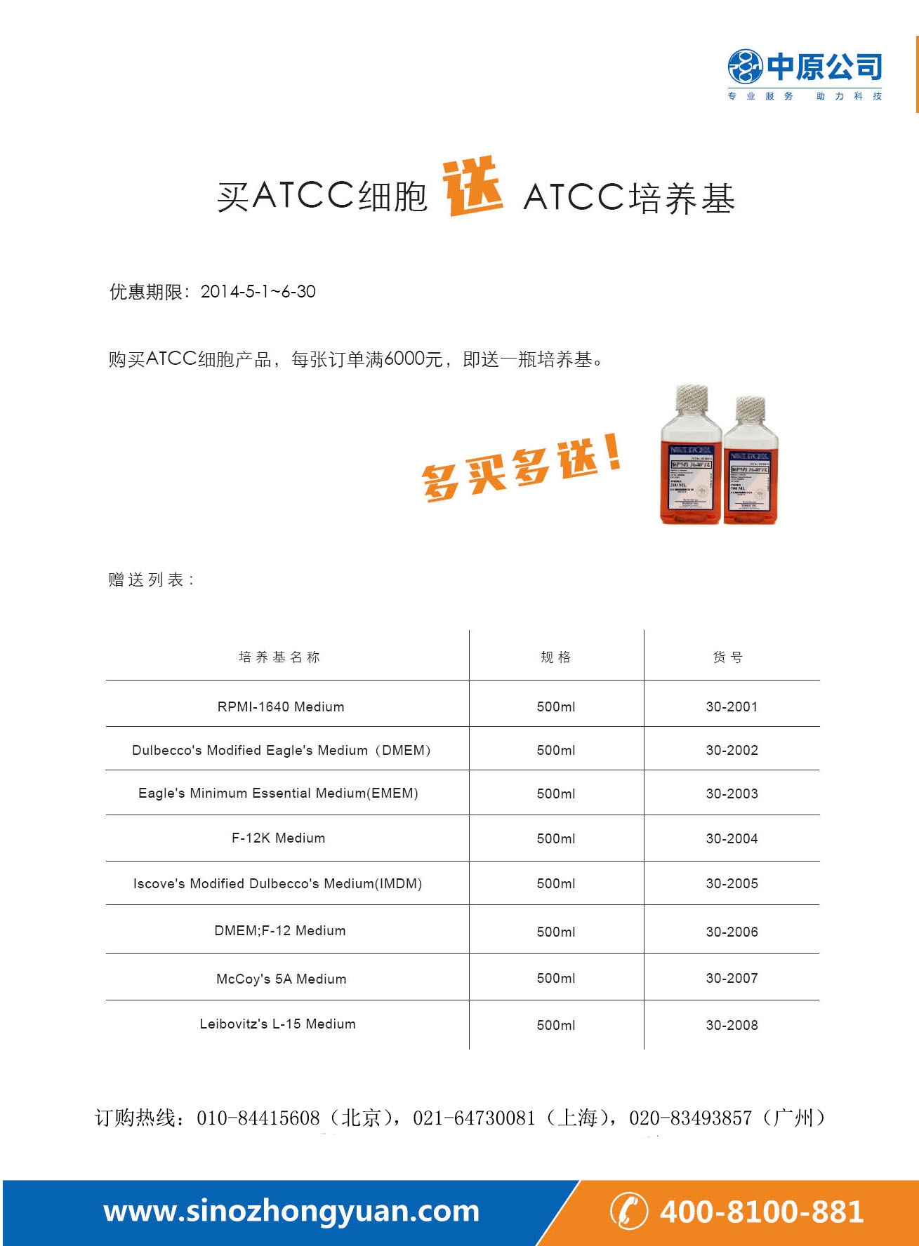 买ATCC细胞 送ATCC培养基!