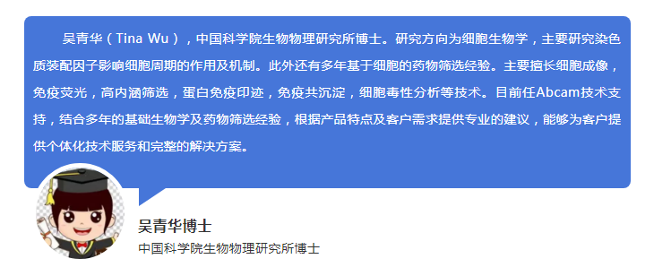 还有Abcam资深技术专家深入剖析有关细胞成像技术,包括各种细胞结构的荧光标记手段、复杂细胞的染色步骤、实验技巧以及近年来出现的相关特色产品等。