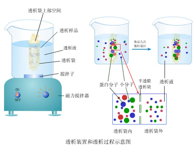 抗体溶液中的叠氮化钠可通过渗析或凝胶过滤去除。IgG 的分子量为 150,000 Da(IgM 约为 600,000 Da),叠氮化钠的分子量为 65 Da。截留分子量为 14,000 Da 的微渗析装置可使叠氮化物顺利扩散出去,而抗体得以保留。