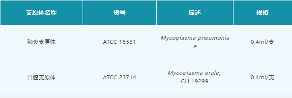 在中国药典2020版三部:3301 支原体检查法中,明确标明了支原体检测时使用的菌株为ATCC来源的菌株,产品信息如下: