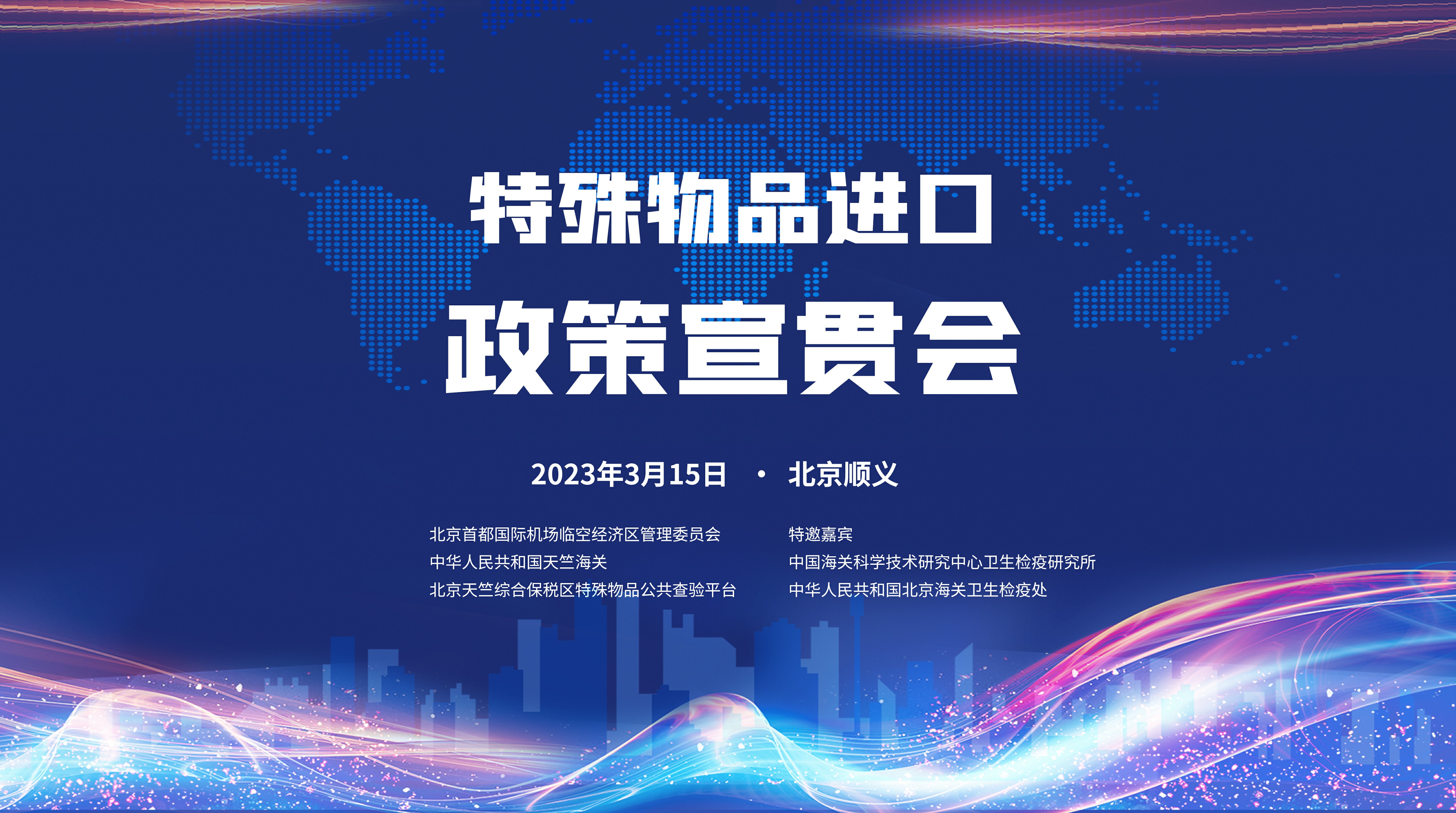 为支持国内生物医药行业发展、提升进口产品通关便利化水平,加速建成具有服务贸易特色、高水平开放、高质量发展的综合保税区,持续推动“两区”建设,北京首都国际机场临空经济区管理委员会与天竺海关联合举办,特邀中国海关科学技术研究中心卫生检疫研究所、中华人民共和国北京海关卫生检疫处参会的特殊物品进口政策宣贯会定于2023年3月15日 (周三) 下午14: 00在北京首都国际机场临空经济区管理委员会报告厅举行。2023-03-13 13:41:00.0