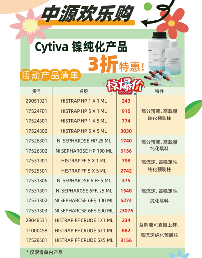 购买清单内任意Cytiva 镍纯化产品,即可享受3折特惠!多买多享优惠哦!2026-02-09 11:17:00.0