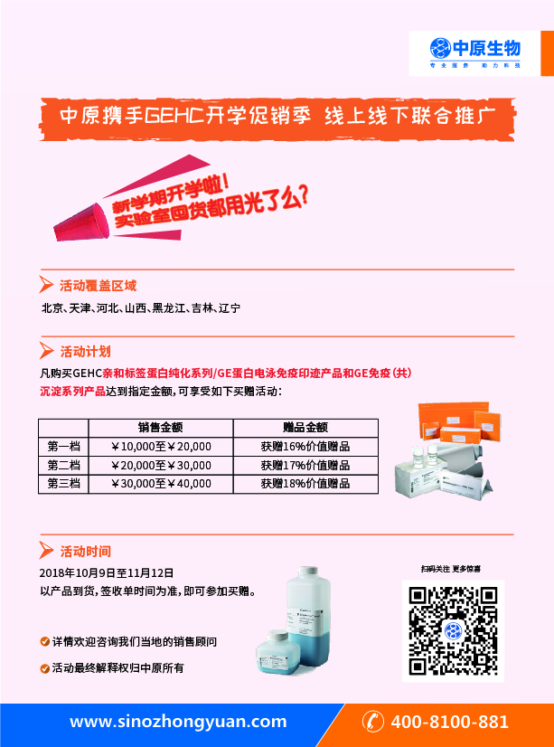 恰逢今年是abcam成立的20周年,值此20周年庆典之际,衷心感谢各位伙伴和用户对Abcam的支持,中原携手Abcam为您带来多种优惠活动。2018-10-17 15:27:00.0
