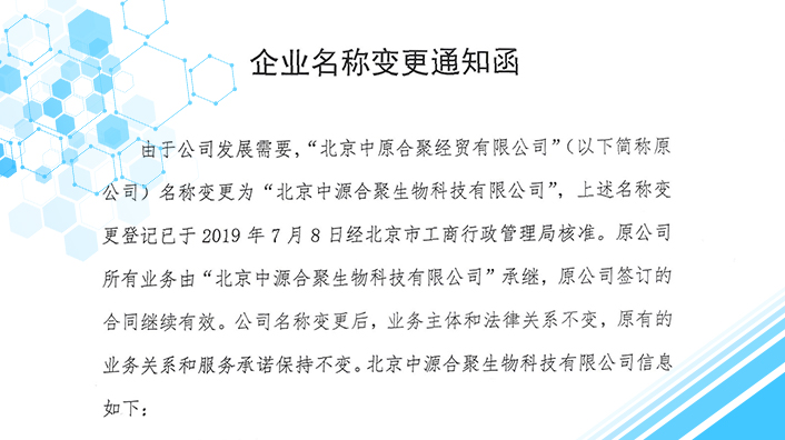 由于公司业务发展需要,“北京中原合聚经贸有限公司”(以下简称原公司)名称变更为“云开线上官网_云开(中国) ”。2019-07-15 09:15:00.0