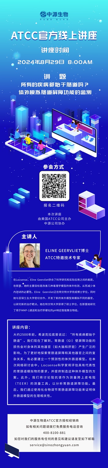 ATCC网络研讨会邀请函 | 体外模拟肠道屏障功能的监测
