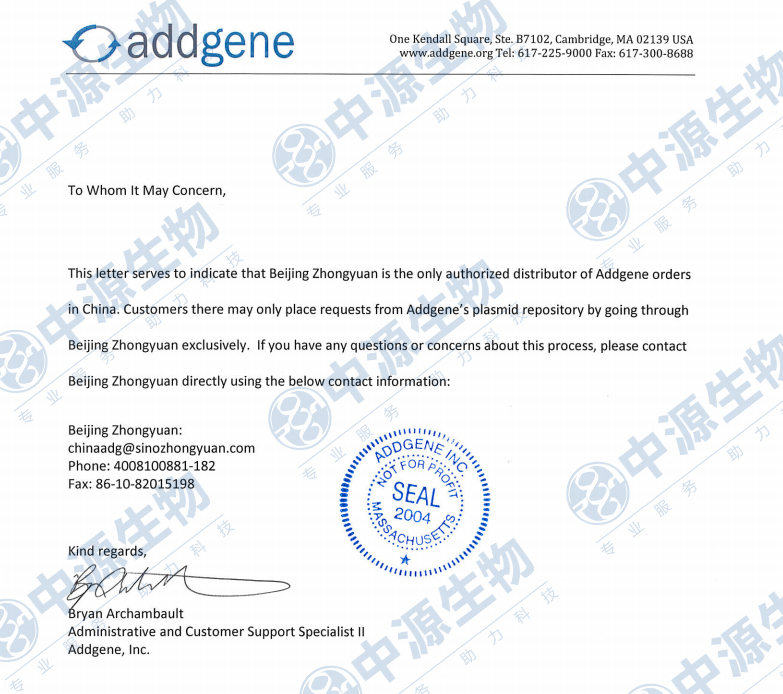 Addgene指定云开线上官网_云开(中国) 为其中国大陆独家授权代理商,授权可在Addgene官方网站 上查询确认。