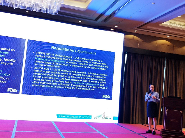 SAINT-GOBAIN公司,高级技术专家刘家英和研发经理洪海燕,给大家介绍了“生物制药管路选型和相关法规解读”