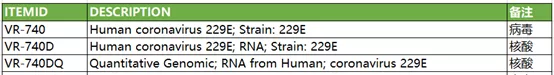a.特点:从感染Human coronavirus 229E strain 229E (ATCC®VR-740)的MRC-5细胞(ATCC®CCL -171)裂解液和上清液中分离得到的基因组RNA。本品是用已知的灭活病毒的方法制备的。