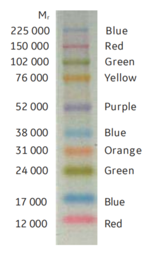 彩虹 marker 可通过 SDS-PAGE 快速、简单地识别蛋白质。RPN800E 提供锐利、 强烈的带数和离散的带间距, 从而能够准确地确定分子量。