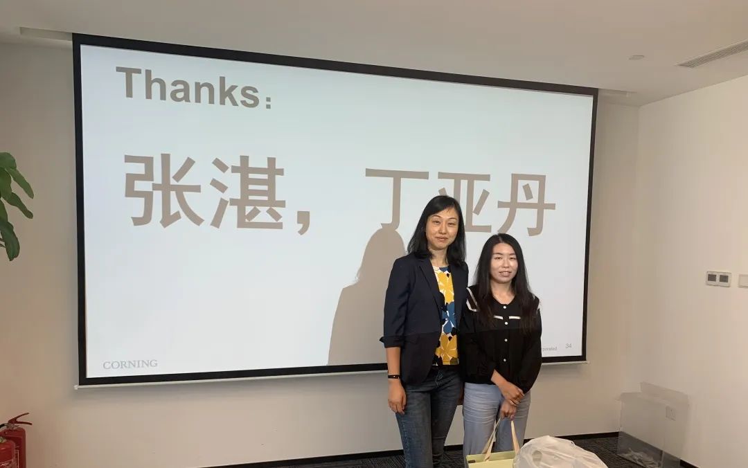 中源公司进出口二部丁亚丹(右)获康宁公司业务突出奖