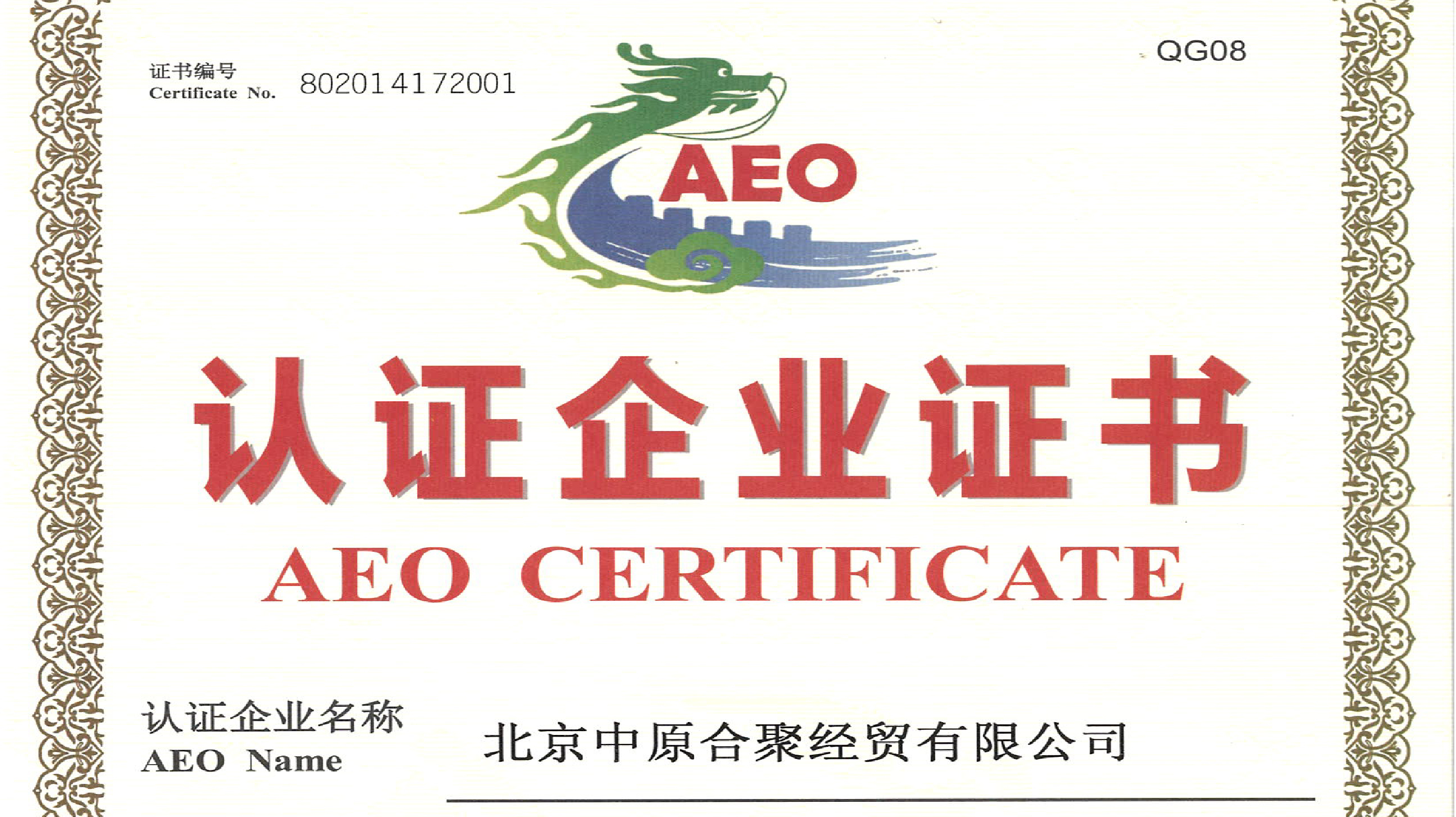 At the end of January 2018, Beijing Zhongyuan Ltd. received the Beijing Customs Decision on Continued Application of Advanced Certification Management and agreed to continue to apply the advanced customs certification management. 2018-02-09 15:26:00.0